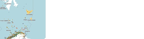 De gule feltene angir hvor de fisker snøkrabbe i dag. (Bartens Watch)